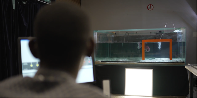 Il s’agissait d’un cyprin doré, un grand poisson rouge et blanc de 50 centimètres de long qui nageait dans un aquarium de 3000 litres. C’était en réalité un robot biomimétique très réaliste, mais les participants l’ignoraient (ceux ayant eu des doutes sur l’expérience, environ 15 % de l’échantillon, ont été retirés des analyses).