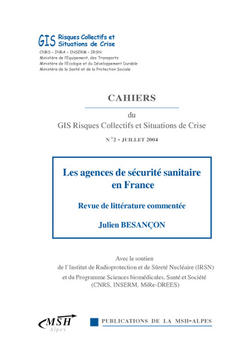 Les crises de santé publique qui se sont successivement développées depuis les années 1980 ont été à l'origine de la création de différentes agences qui ont profondément renouvelé les conditions de l'action publique dans le domaine sanitaire. Or, bien qu'il s'agisse là d'un "chantier" très important modifiant les modes de gestion des risques, ces structures demeurent encore mal connues.